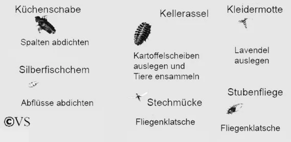 Schädlinge im Haushalt, die evt. Krankheiten übertragen.