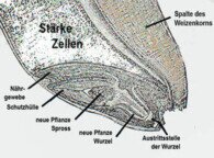 Für die Demonstration im Unterricht kann man keimfähige Gerste auf feuchtem Filtrierpapier in Petrischalen auskeimen lassen, die Keimlinge trocknen und im Mörser zerstampfen.