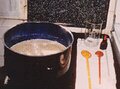 Zwei 20 Liter fassende Edelstahltöpfe, Kochlöffel, Heizplatte oder Herd, Thermometer, Kühlschrank.