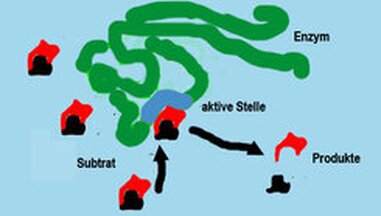 These: Enzyme reagieren meist nur mit bestimmten Ausgangsstoffen (Substrate). Es liegt Substratspezifität vor. Das bedeutet für jeden Stoffwechselvorgang ein besonderes Enzym.