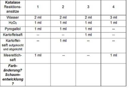 Info: Das Enzyme im Kartoffelbrei hat den Namen Katalase erhalten.