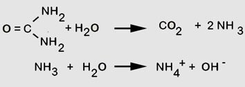 Info: Urease nennt man ein Enzym, das in allen Geweben vorkommt und sehr spezifisch Harnstoff spaltet. Es wurde zuerst im Urin nachgewiesen, daher der Name. Das Enzym hat aber mit dem Urin nichts zu tun.
