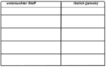 Nachweis von gelösten Substanzen: Beim Lösen in Wasser wird das gelöste Salz unsichtbar. Dies ist für farblose lösliche Stoffe typisch, bei farbigen Stoffen bleibt die Farbe erhalten. Um dem Trugschluss zu begegnen, das Salz sei nun endgültig "verschwunden", könnte auch ein Geschmackstest durchgeführt werden. Davon muss unbedingt abgesehen werden: der Stoff könnte ja giftig sein. Vielen Kindern ist aus einem Bad im Meerwasser bekannt, dass das Salzwasser auf der Haut eintrocknet. Es bilden sich Salzkristalle. Durch Verdunsten des Lösungsmittels kommt die Substanz wieder hervor. Vorgenommene didaktische Reduktionen: Die Frage der Löslichkeit wird nur anhand des Lösungsmittels Wasser behandelt. Alkohol oder Säuren spielen in der Industrie als Lösungsmittel fast ebenso bedeutende Rollen. Auf die Temperaturabhängigkeit der Löslichkeit von Stoffen wird hier nicht eingegangen. Dieser Versuch kann aber in höheren Klassen zur Bestimmung der Temperaturabhängigkeit der Löslichkeit verwendet werden. (vgl: Schneider, V. u. Th. Zahn: Beiträge zur Didaktik, Shaker Verlag 2008) | ||