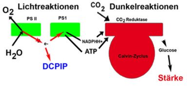 Stärke Synthese im belichteten Blatt, Nachweis von Stärkekörnern Einfluss von Kohlenstoffdioxid, Elektronentransport