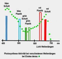 Die Versuche zeigten, dass die einfachen Filter im wesentlichen das Aktivitätsspektrum von Elodea densa widerspiegeln