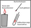 sauberes Becherglas und führt ein glimmendes Buchenholzstück ein.