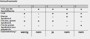 Damit ist mit einfachen Mitteln eine Zweifaktoren-Einfluss bei der Photosynthese nachgewiesen.