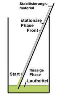 4: Die zwischen Küchenkrepp getrockneten Blätter legt man in heißen Spiritus bis sie vollständig entfärbt sind.