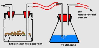 Nachweis der Wasseraufnahme von Samen und der Inneren Atmung bei Erbsen.