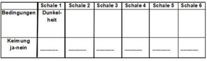 Tabelle zum Nachweis des zeitlichen Verlaufs von Quellung und Keimung