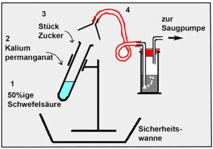 Test: Vorsichtiges Berühren des dickwandigen Reagenzglases: Vorsicht, sehr heiß!!